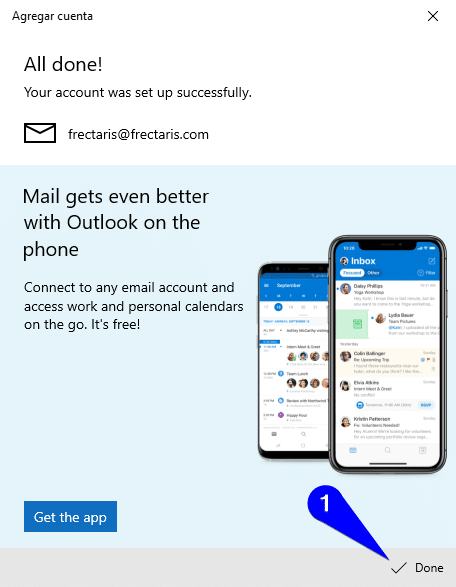 Para finalizar si todo ha ido bien, nos aparecerá esta última ventana donde daremos en “Hecho” y ya tendremos nuestro correo configurado.